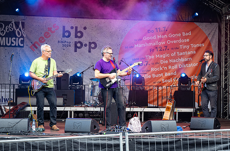 Best of music meets BiBiPop lautet daher das diesjährige Format. Freuen Sie sich auf die Bands Magic of Santana, Poems on the rocks, Marshmallow Overdose, Tiny Tones, Soul Connection, Good Man Gone Bad, Rock’n’Roll Diktator & Alle Bunt Band und Die Nachbarn.